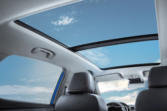 Sit back, relax, and enjoy the large cabin space of the MG ZS EV, offering comfort and practicality. The updated charging port is located behind the grille for easier access and the improved charging indicator shows the car’s battery level at a single glance. The spacious interior provides ample room for passengers and cargo, with a foldable rear seat that expands the load capacity and a practical roof rail that can carry up to 75 kg. The V2L reverse charging function allows you to connect external devices and power them off the car’s own battery.